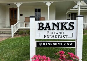 Banks Bed and Breakfast is the only1897 historic stay located on North Carolina’s first paved highway. Four en-suite rooms are available for overnight stays Wednesday through Saturday nights. Each overnight stay includes a full gourmet breakfast.